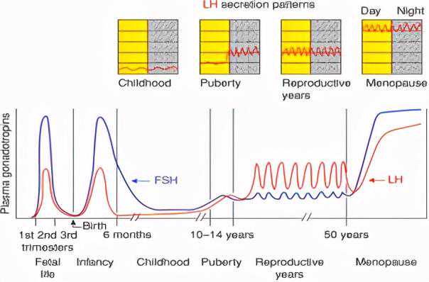 ★卵泡期:FSH,LH基础分泌不足,卵泡发育不良,颗粒细胞和卵泡膜细胞数量减少;LH偏高、LH脉冲异常,颗粒细胞过早黄素化。